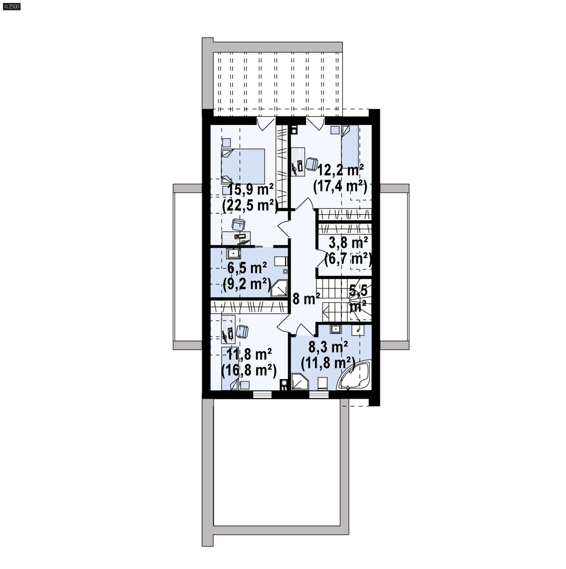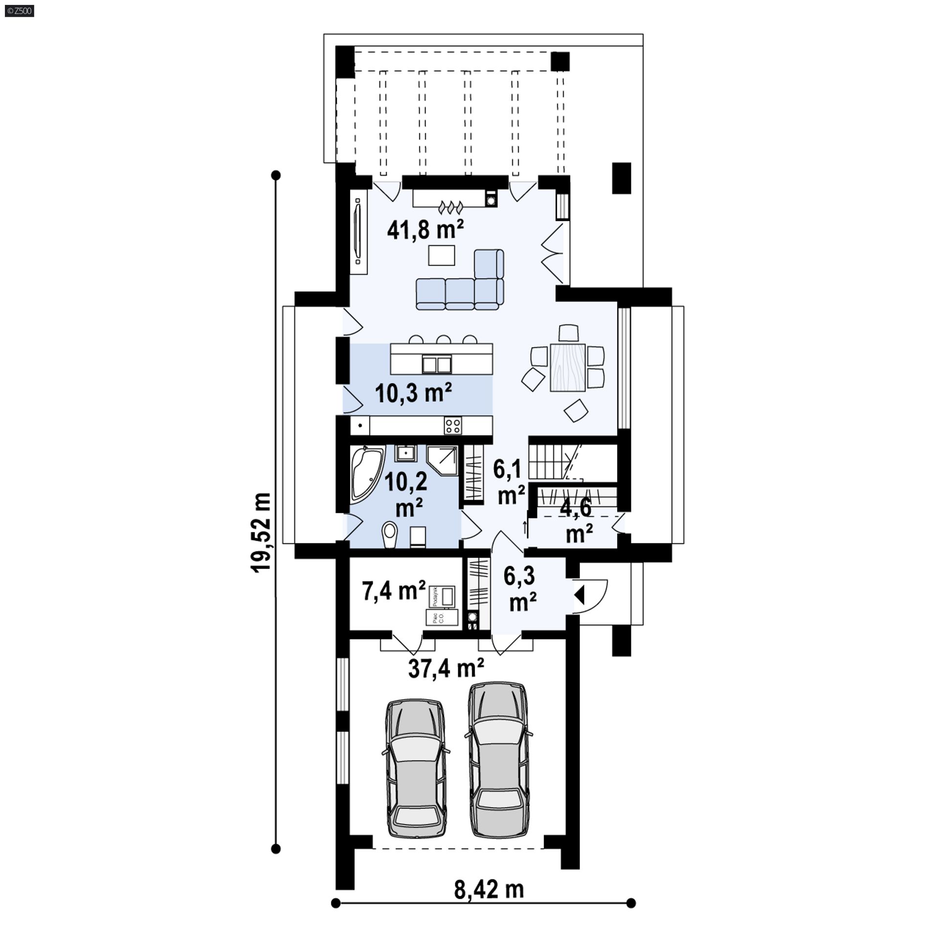 Z330 D p to kolejny z serii domów Z500, nadających się do budowy na wąskiej działce. Dostarczy jego właścicielom potrójnej satysfakcji: