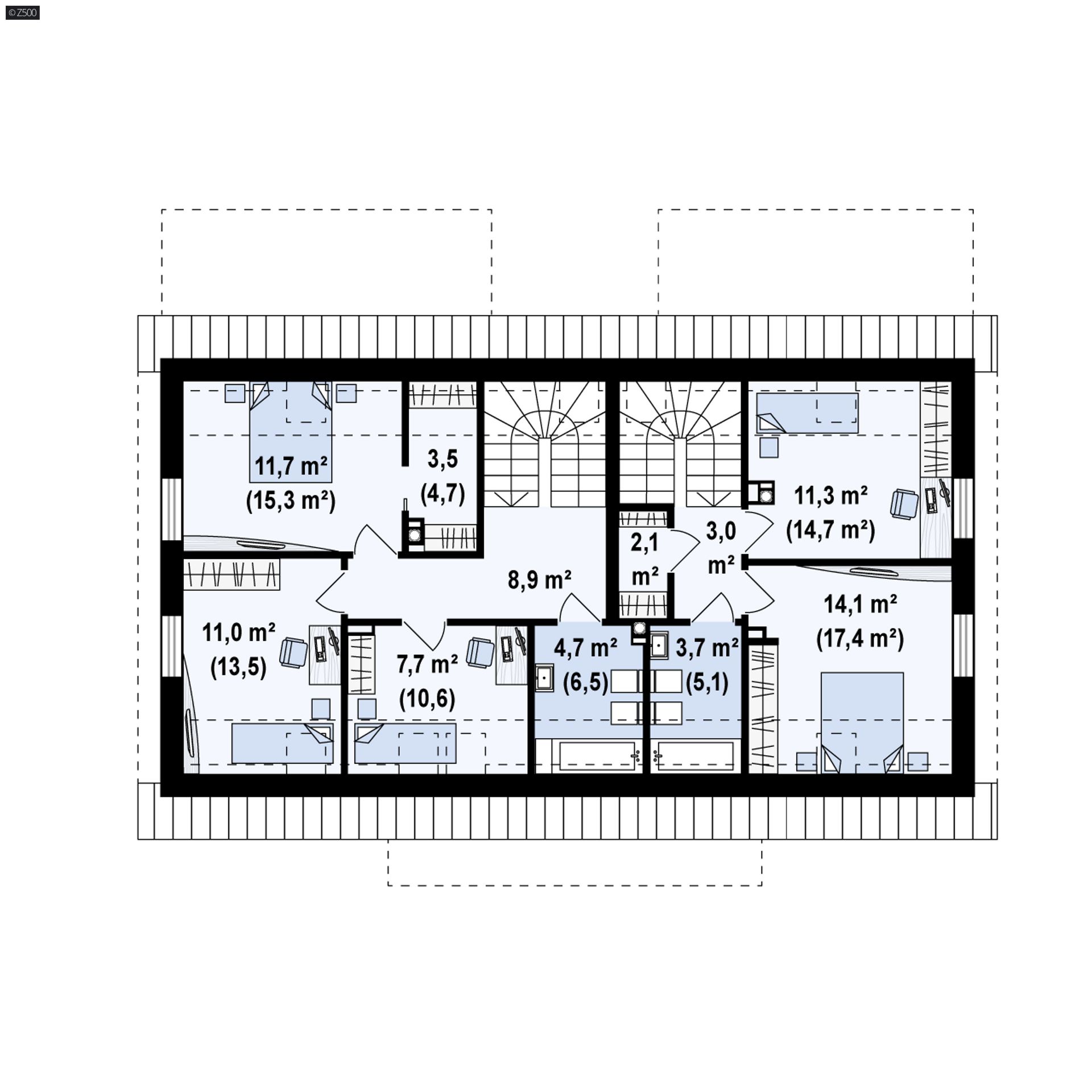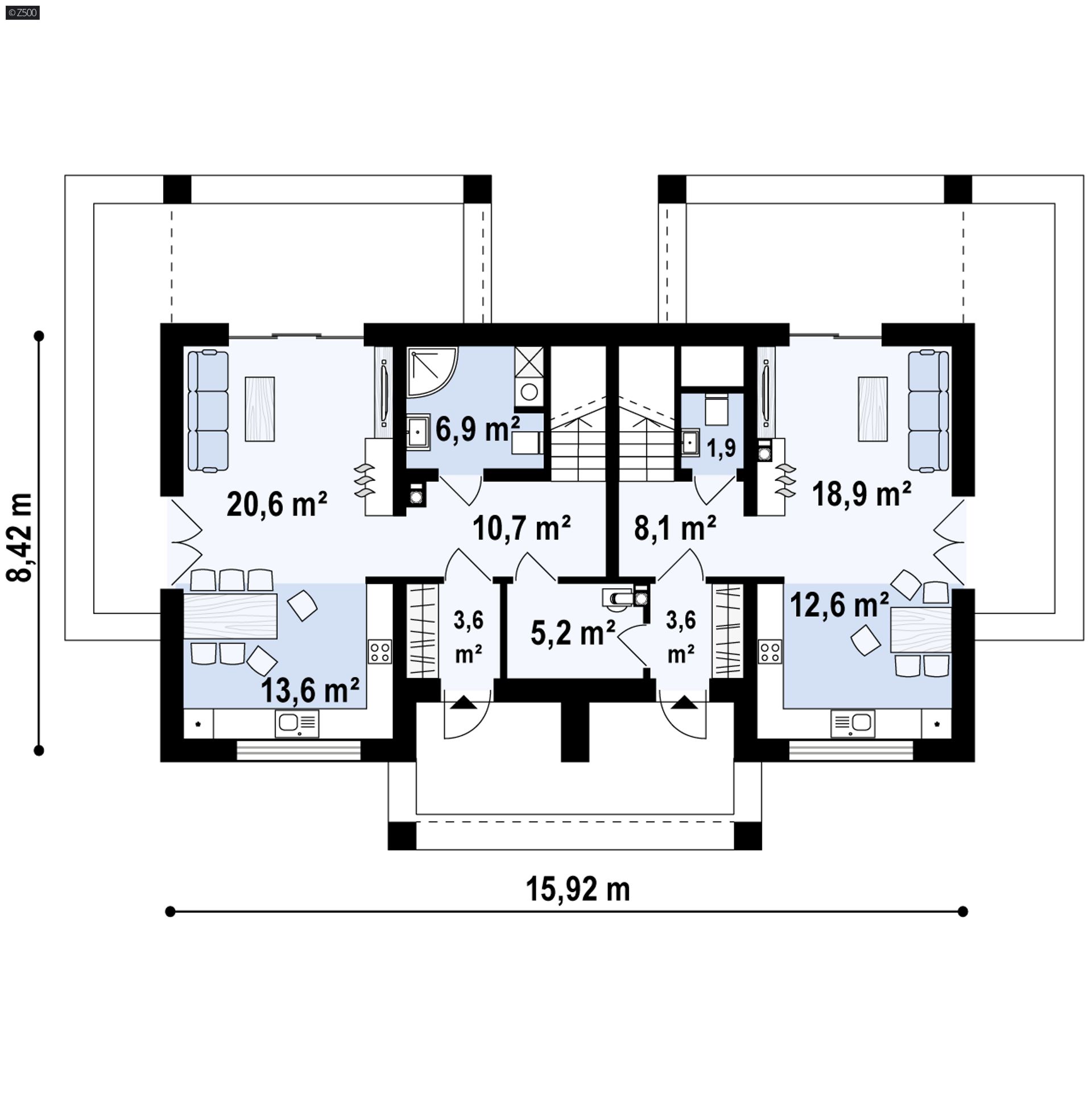Z351 D to dom dwulokalowy z tradycyjnym dachem dwuspadowym. Aranżację