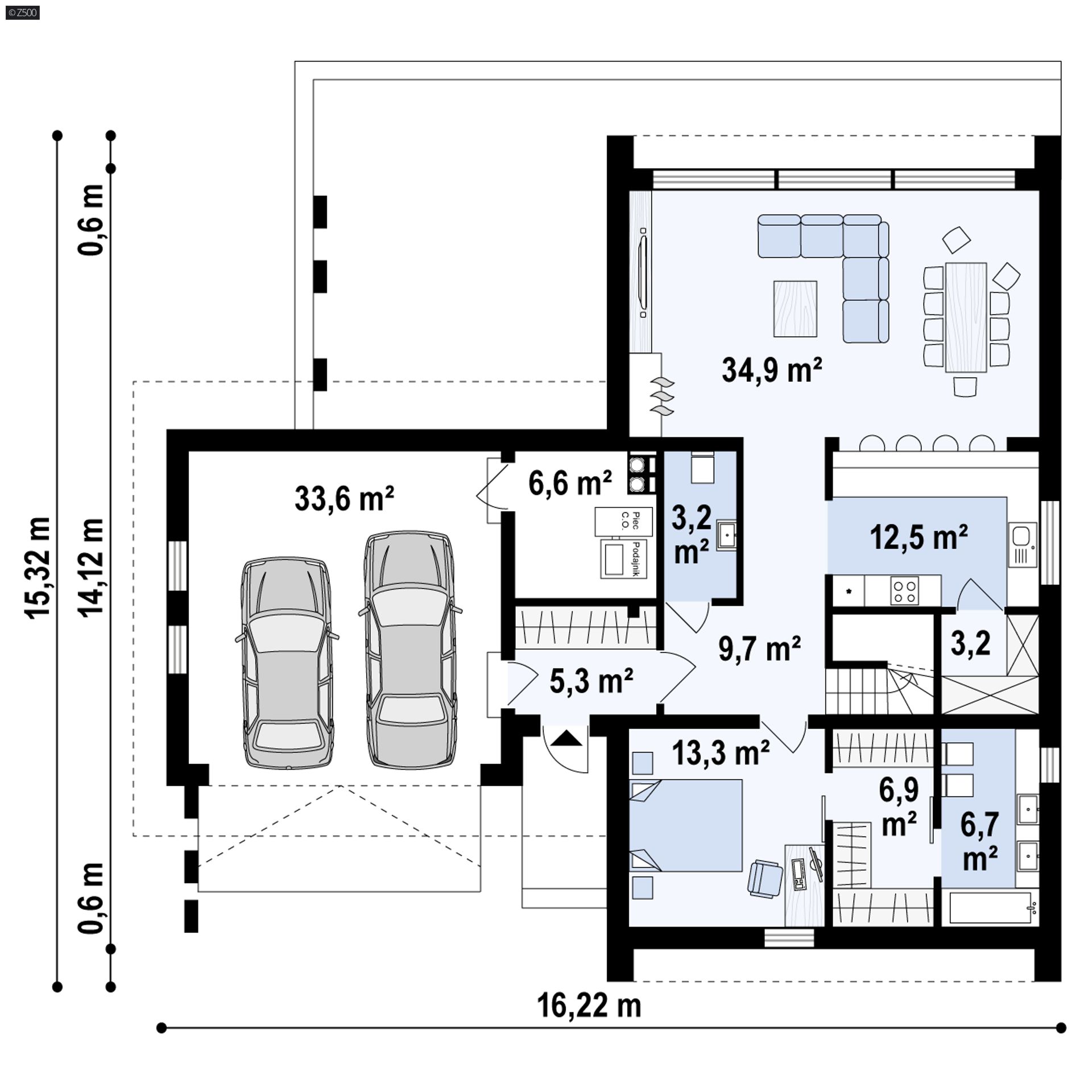 Projekt domu z antresolą, poddaszem użytkowym, spadzistym dachem i dwustanowiskowym garażem. Sprosta oczekiwaniom nawet najbardziej wymagającego inwestora.