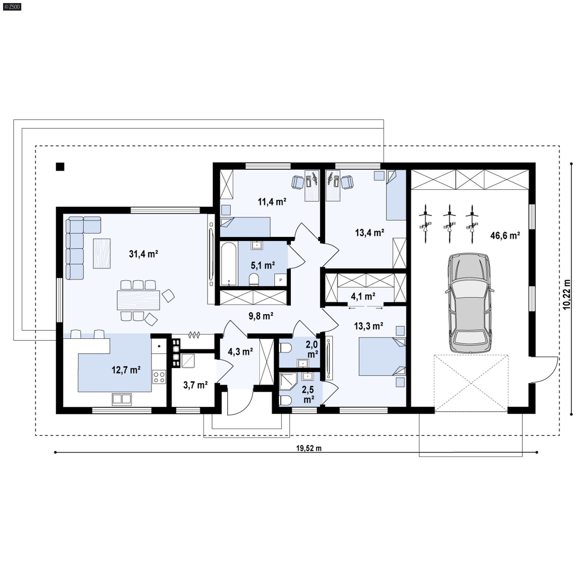 Projekt domu Z368 D GP + 30 powstał jako odpowiedź na potrzebę rodzin z dwojgiem dzieci.