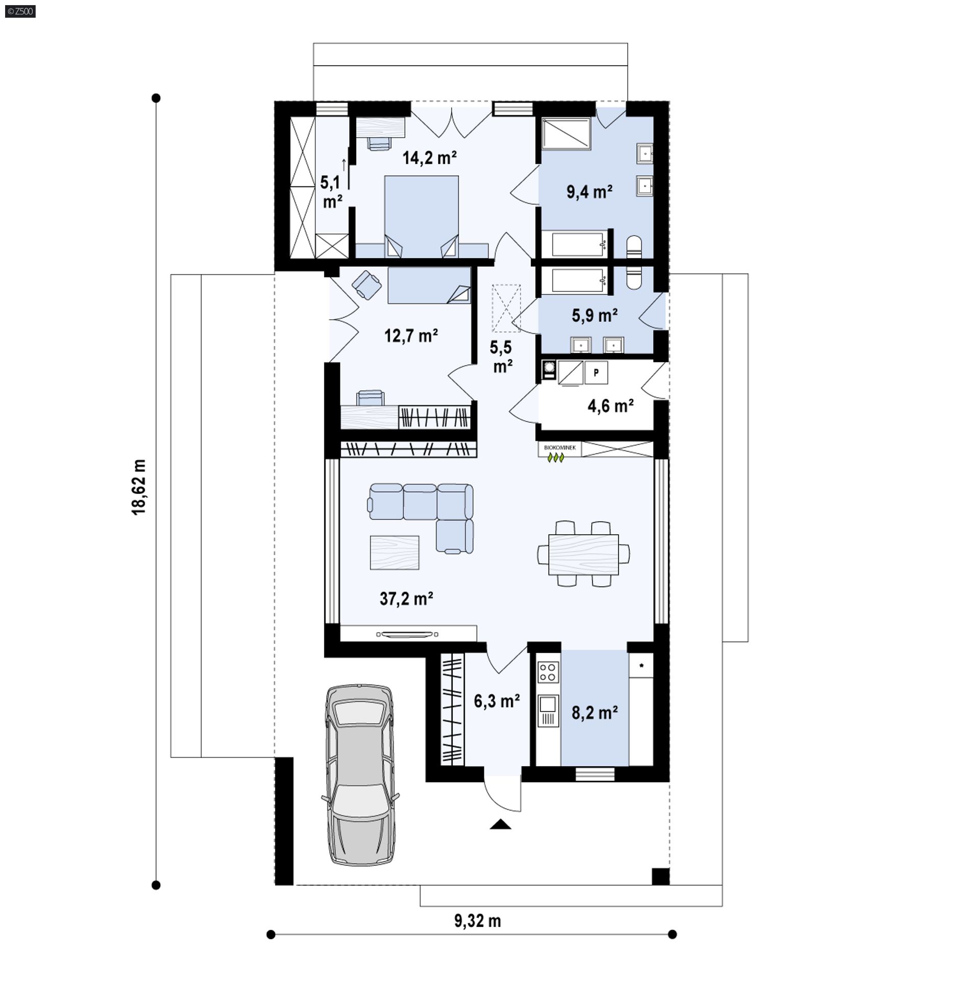 Z472 to współczesna wersja domu z dachem dwuspadowym na wąską działkę.