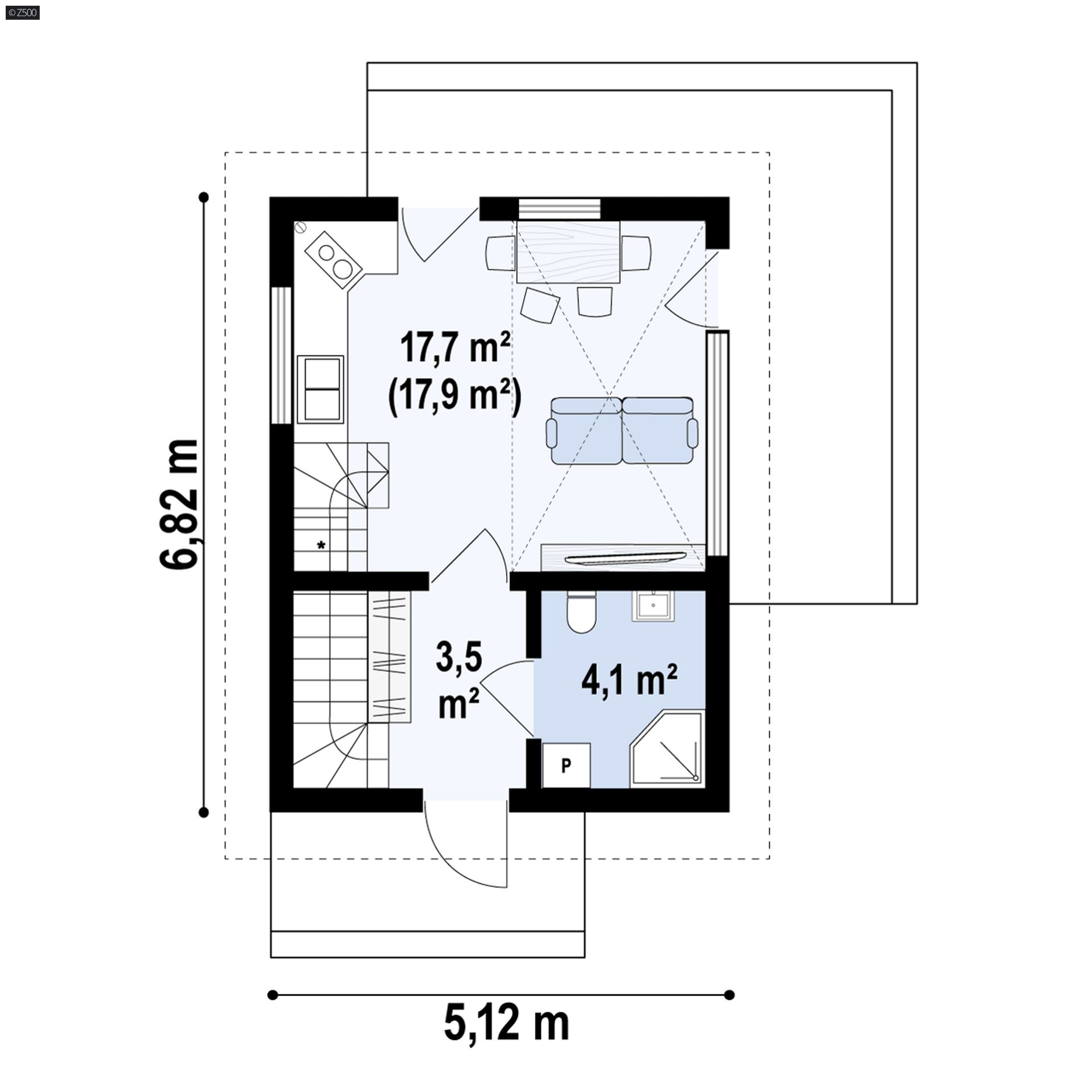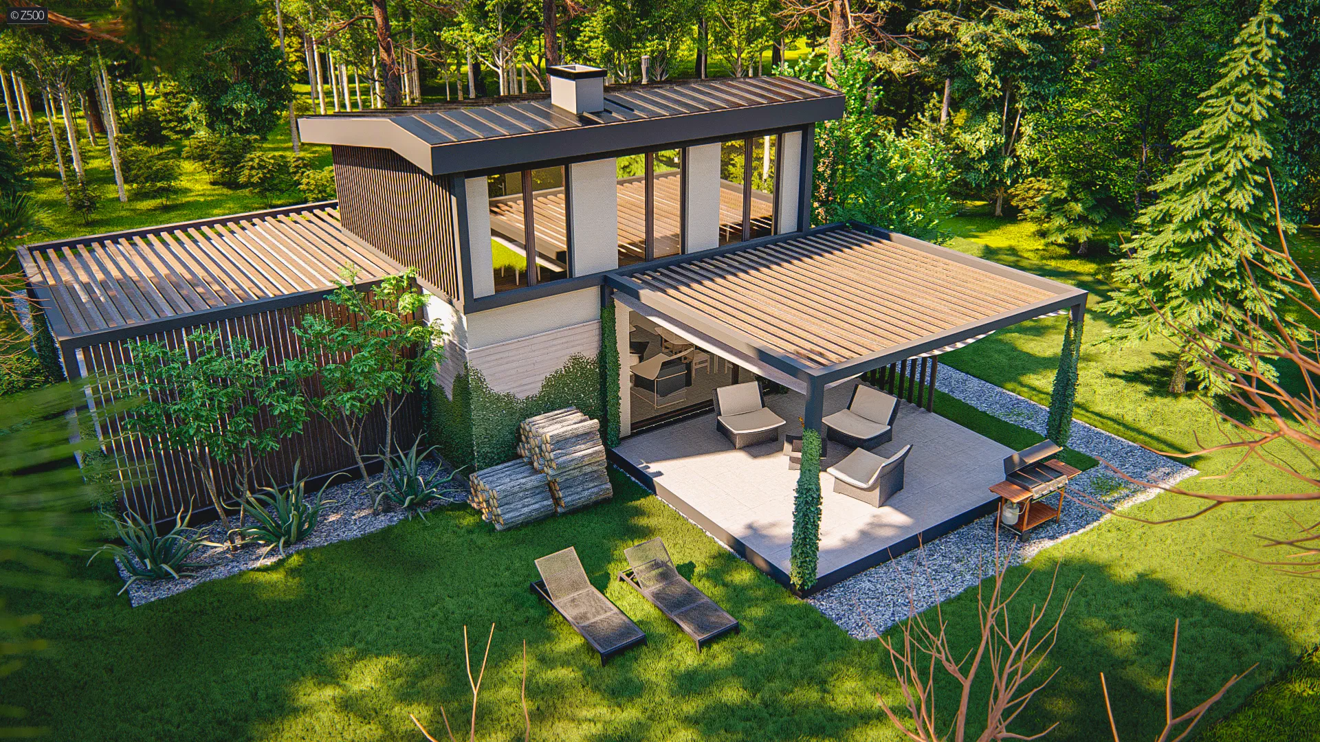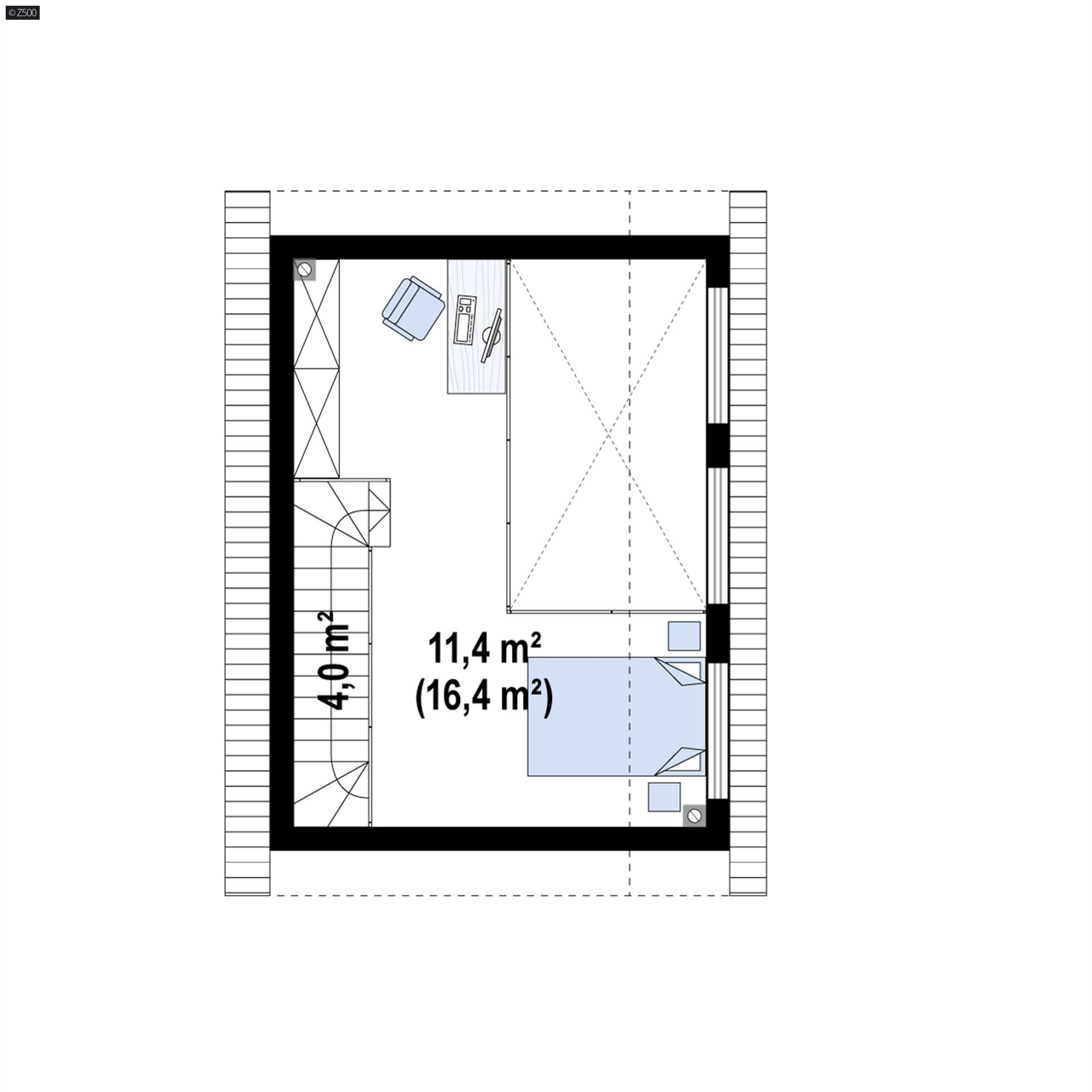 Parterowy domek całoroczny posiada antresolę, która może być później zaadaptowana na różne potrzeby inwestora. Antresola świetnie nadaje się go zagospodarowania jako wydzielona strefa nocna domku, wówczas cały parter można przeznaczyć na wspólną strefę dzienną.